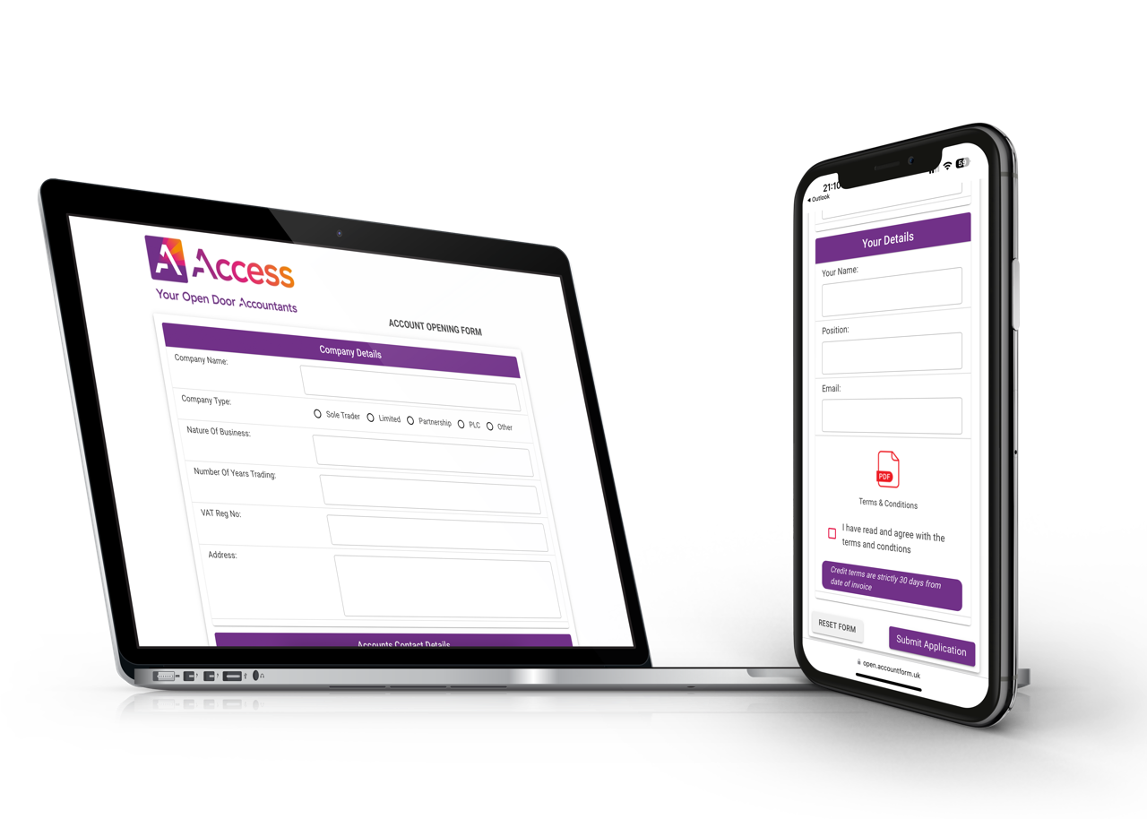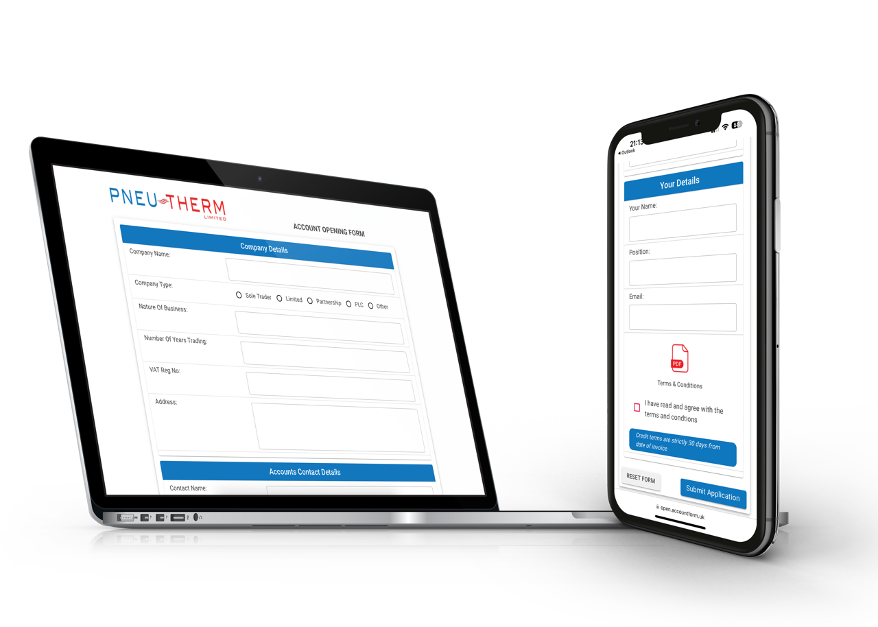 Sign up to Account Form today for £4 per month which includes your company details setup, your own logo, your T&Cs and colourways, or £40 per year.